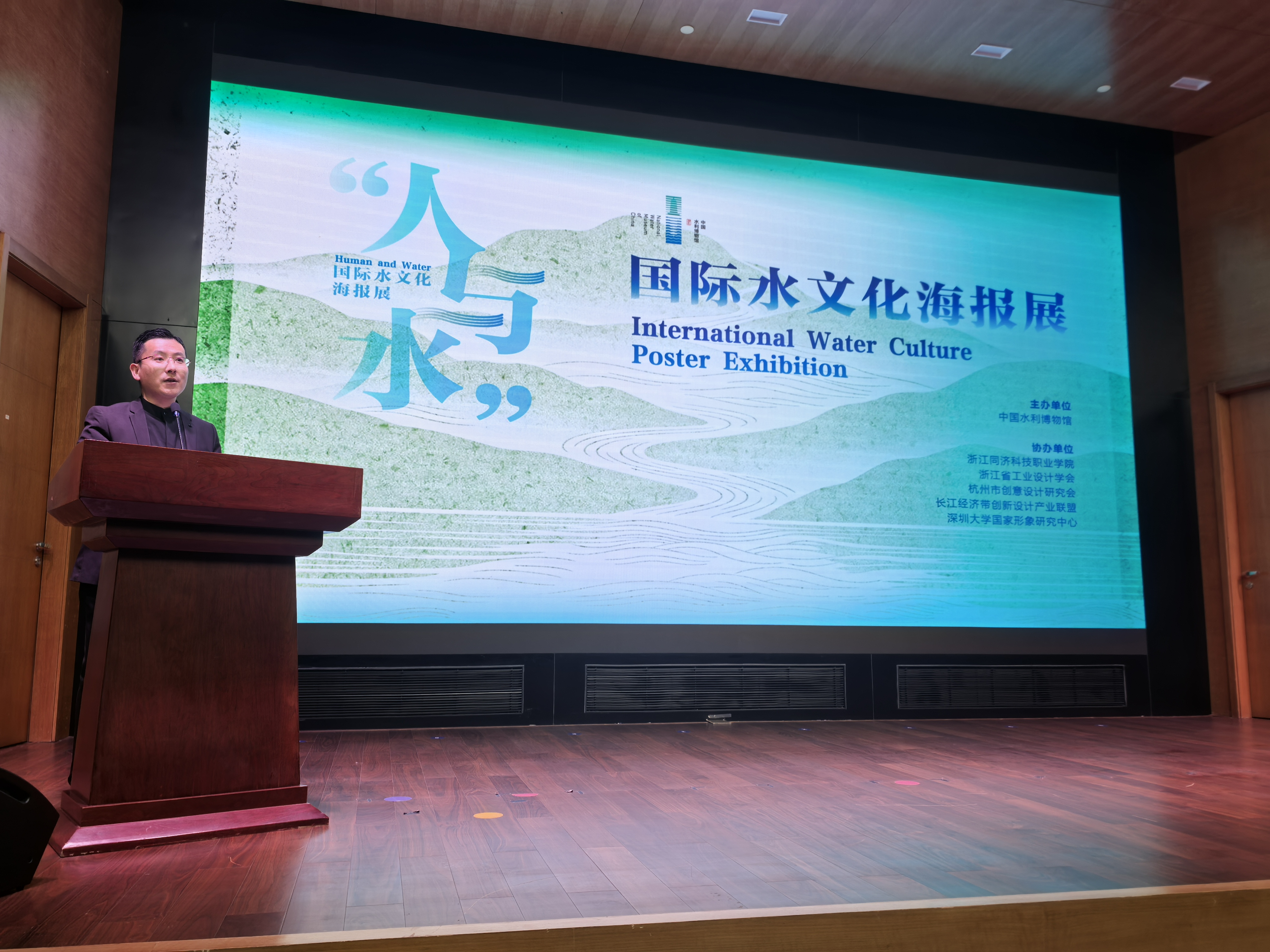 开幕式上,中国水利博物馆馆长在致辞中指出,水是中华文明的生命线,从大禹治水到南水北调,从都江堰到三峡工程,中华民族在与水的共生中积累了丰富的治水智慧与文化积淀。此次展览旨在通过海报这一国际语言,搭建全球对话平台,促进不同文明对水治理、水伦理、水可持续等议题的深度交流。策展人、浙江同济科技职业学院副教授范子珍表示,展览作品既包含传统水墨与数字科技的融合创新,也有对水利工程、节水实践的生动诠释,展现了设计师们对“人水和谐”的多元思考。展览评审委员会由国内外权威设计专家组成,从文化性、艺术性、创新性等维度严格把关。入围作品中,既有对都江堰“深淘滩、低作堰”治水哲学的抽象表达,也有以现代插画形式呈现的“节水护田”公益主题;既有对黄河、长江等母亲河的壮美礼赞,也有对城市水生态修复的细腻观察。